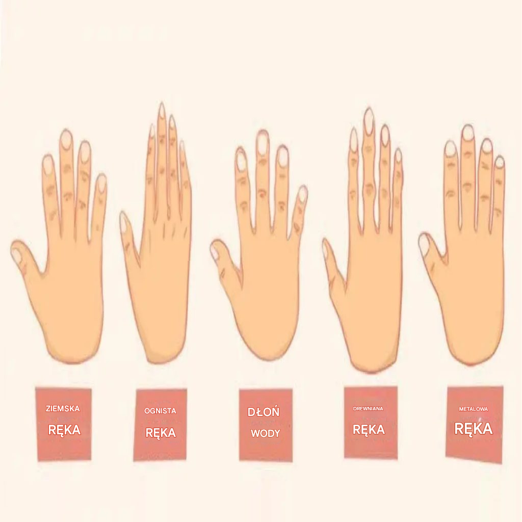 Chiromancja zaczyna się od określenia kształtu dłoni i dopasowania go do 5 żywiołów: wody, ziemi, ognia, drewna i metalu. Te 5 głównych kategorii to te, w których chiromanci definiowali podstawowe wartości ludzi i których kształt wykorzystywali do przewidywania przyszłości.