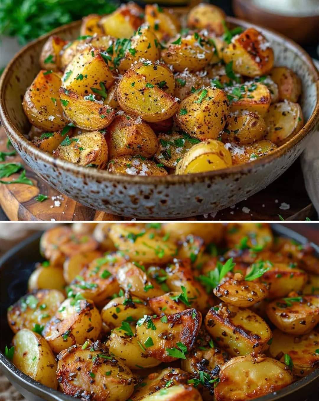 Odkryj eksplozję smaków dzięki naszym pieczonym ziemniakom z czosnkiem i masłem! Chrupiące na zewnątrz, delikatne w środku.