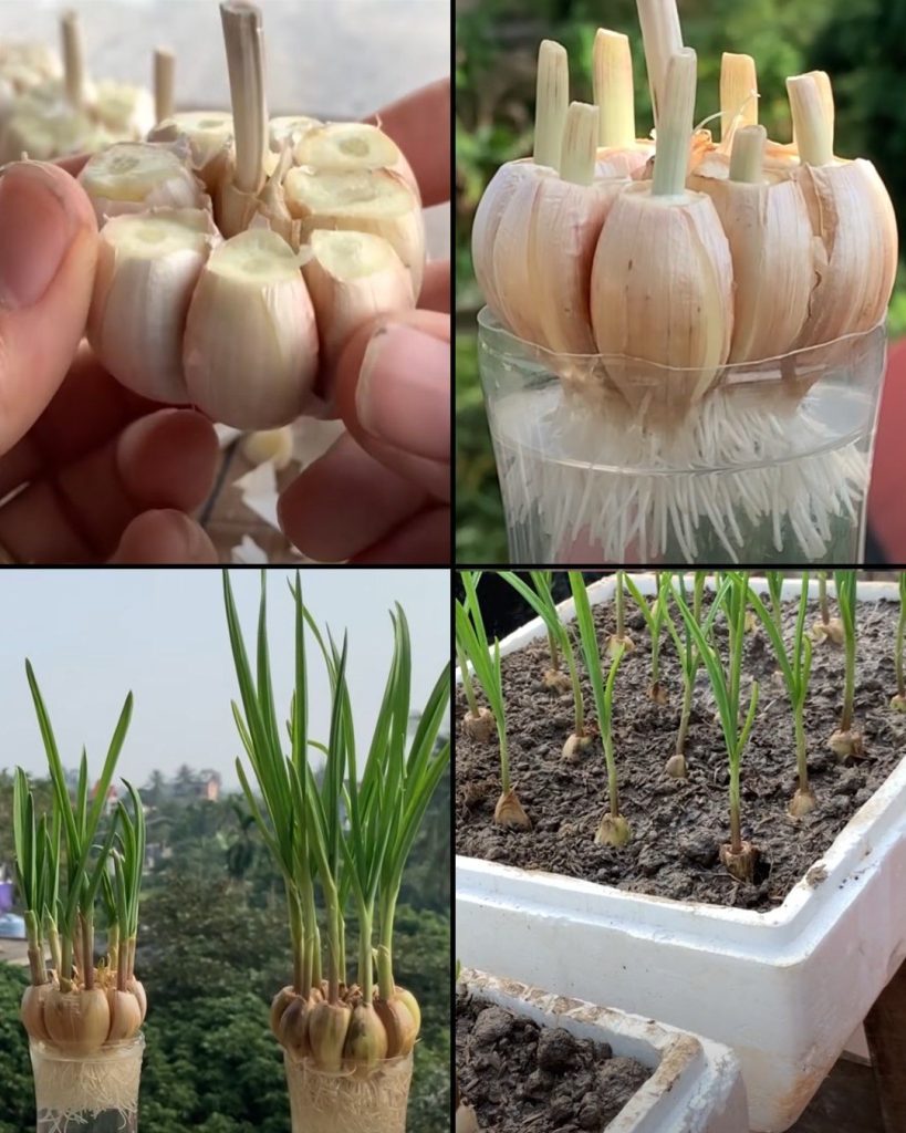 Czosnek to wszechstronny i aromatyczny dodatek do wielu potraw, a jego uprawa w domu w pojemnikach może być zarówno przyjemna, jak i satysfakcjonująca. Ta metoda polega na użyciu całych główek czosnku , odcięciu wierzchołka wokół twardej szyjki , a następnie umieszczeniu całej główki w wodzie, aby pobudzić wzrost. Kiedy główka czosnku wykiełkuje, można podzielić ją na pojedyncze ząbki i zasadzić w pojemnikach wypełnionych ziemią . Ogrodnictwo w pojemnikach pozwala osobom dysponującym ograniczoną przestrzenią lub niesprzyjającymi warunkami zewnętrznymi cieszyć się obfitymi zbiorami czosnku wyhodowanego w domu. W tym artykule przedstawimy Ci proces udanej uprawy czosnku w pojemnikach przy zastosowaniu tej wyjątkowej metody.
